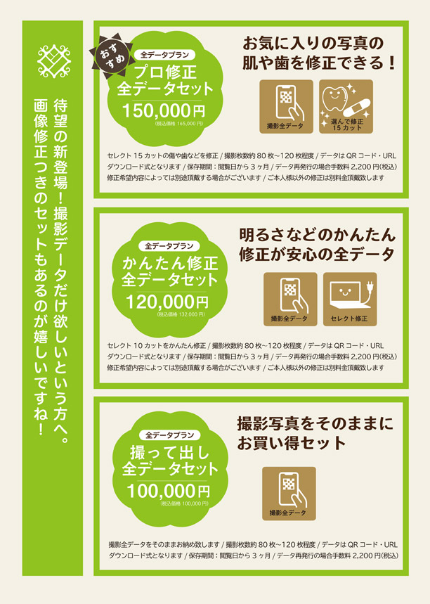 | 撮影価格は場所によって変動あり |