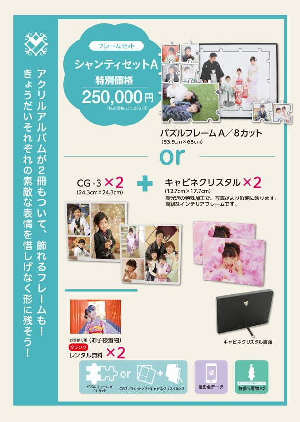 また、七五三の特典としてご購入いただいたお写真の中から1枚待ち受け画像をプレゼントしております。
